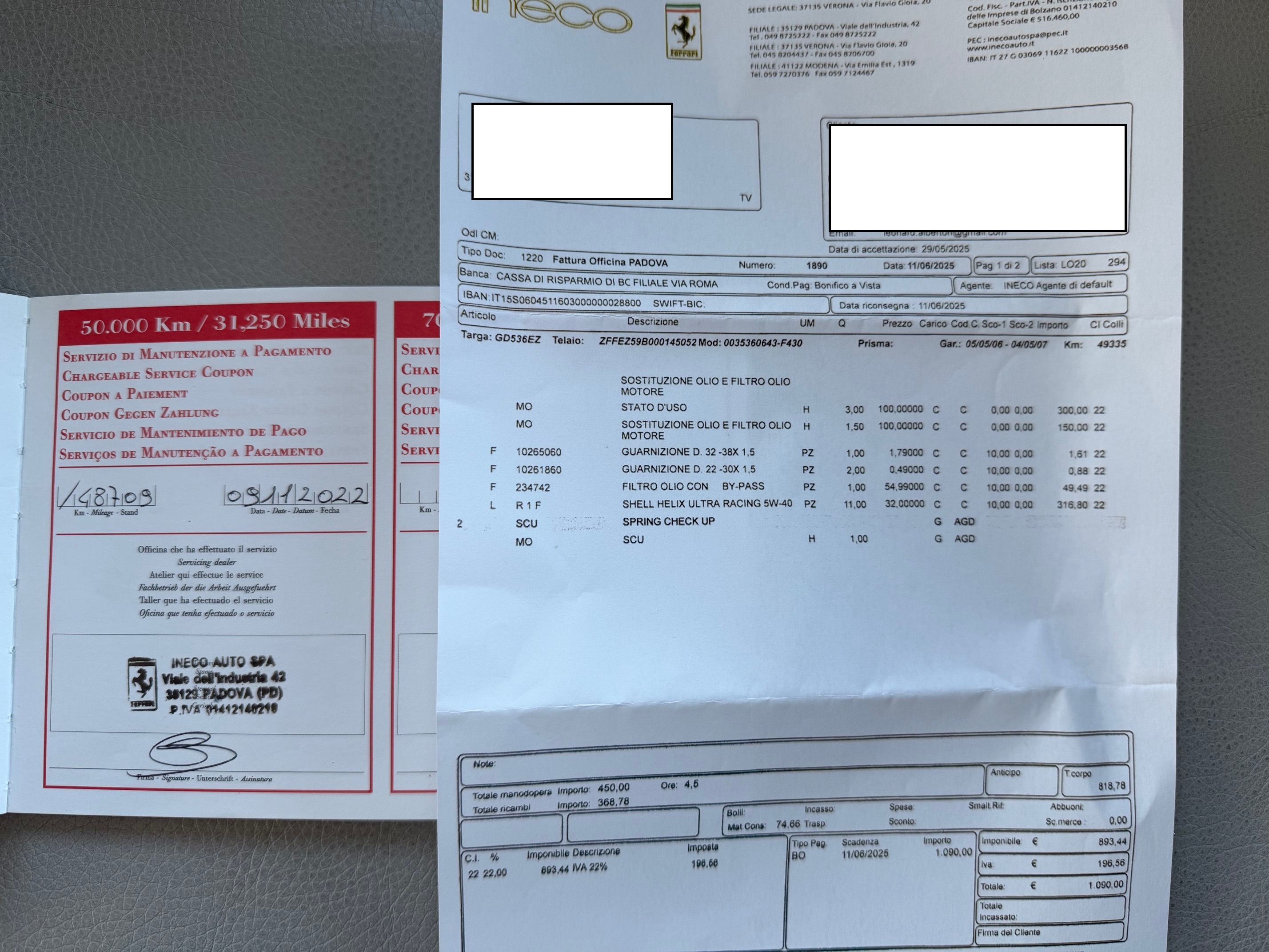 VETTURA CON KM DOC. COME DA SERVICE, E, FATTURA CON TAGLIANDO APPENA ESEGUITO