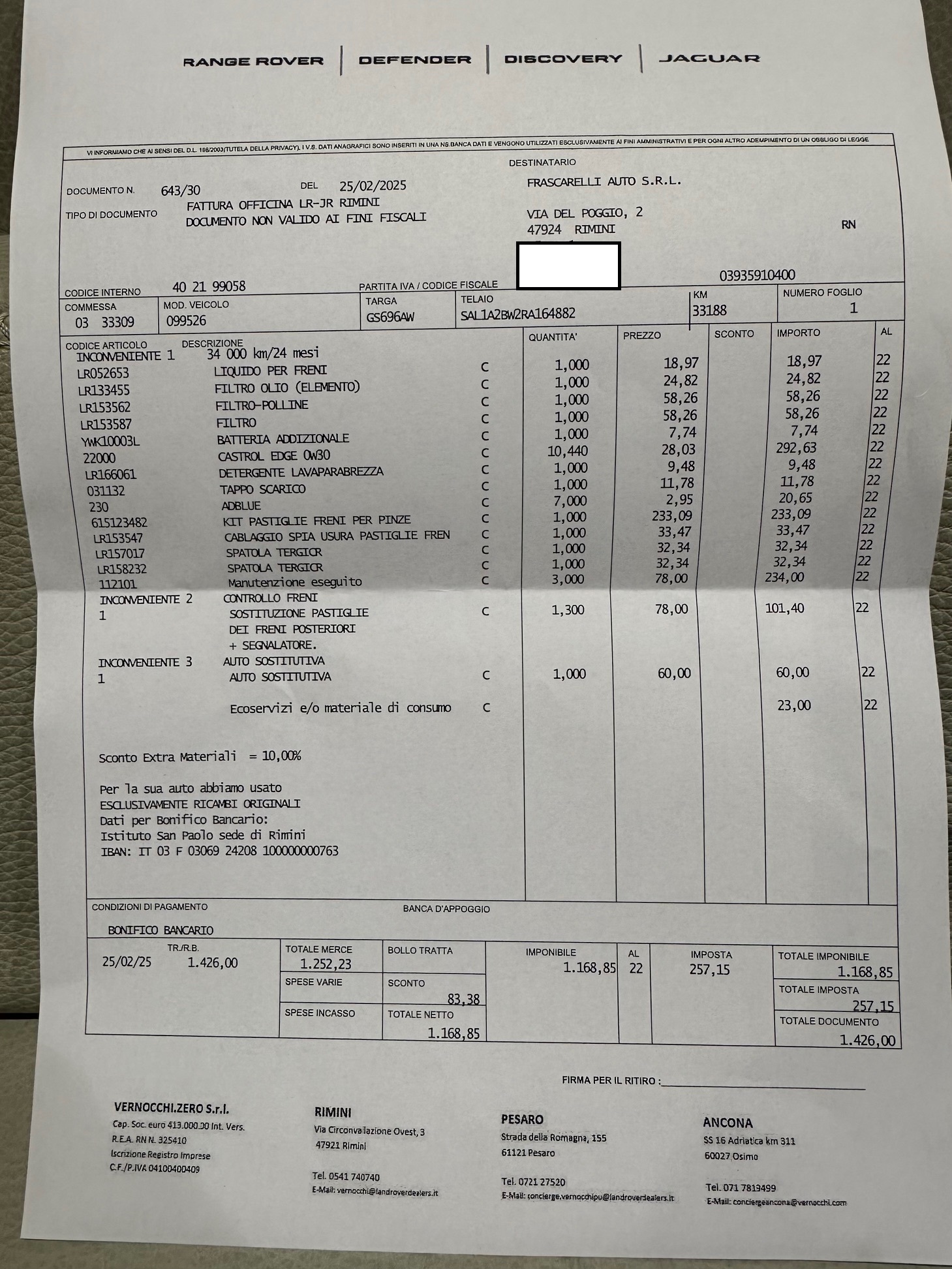 SI GRADISCE CONTATTO TELEFONICO PER IMMEDIATE DELUCIDAZIONI