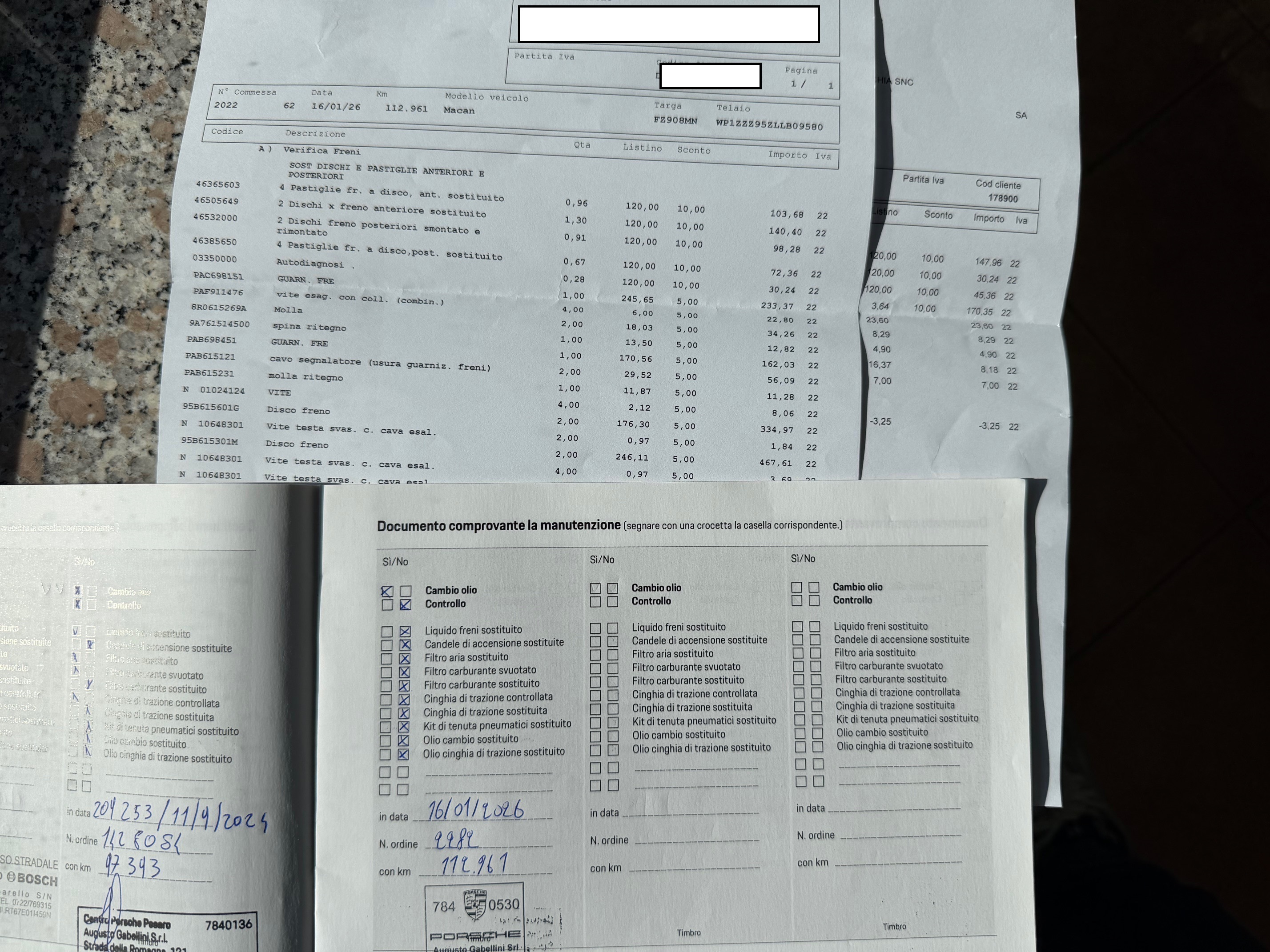 VETTURA CON TAGLIANDI CERTIFICATI CASA MADRE